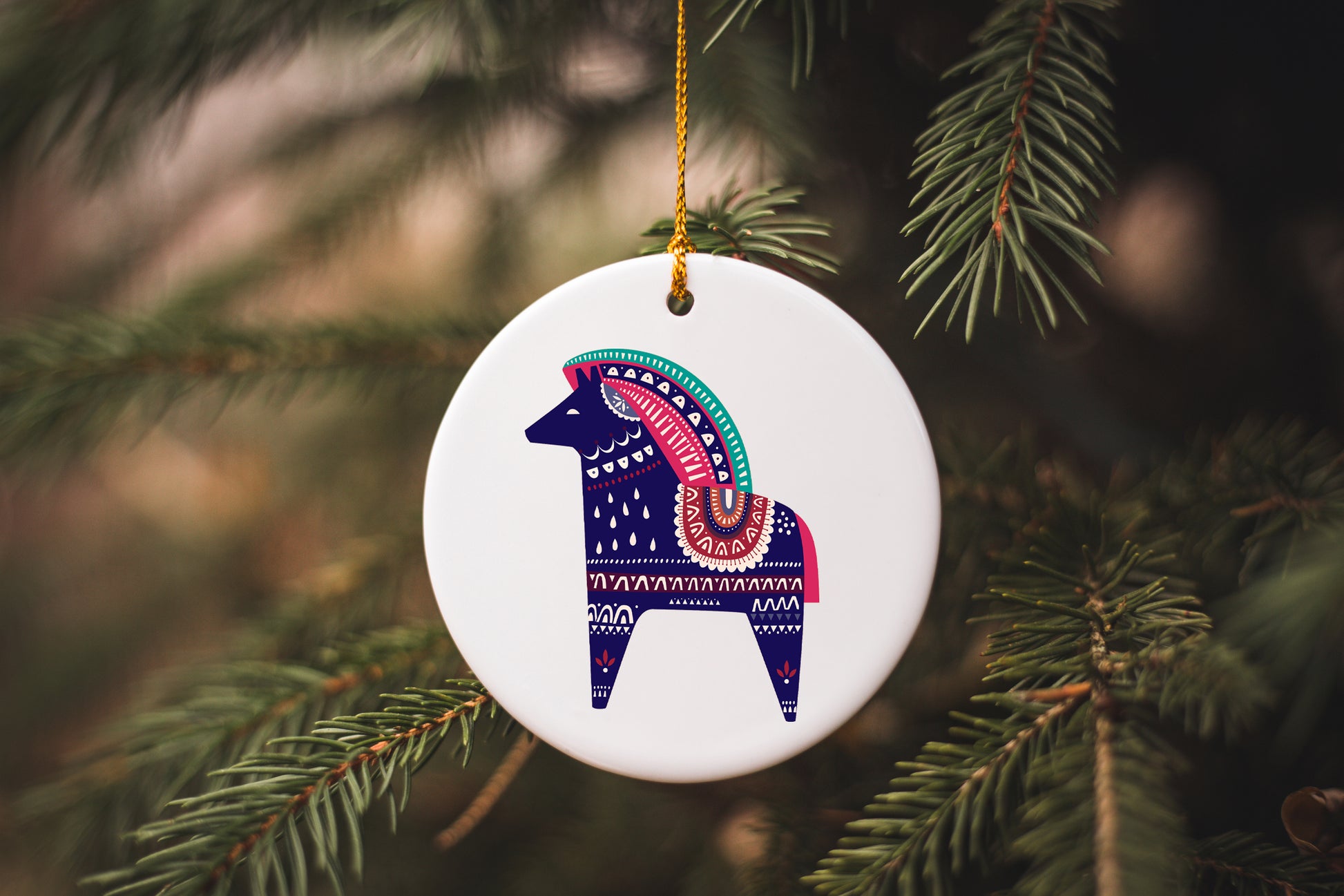 A hand printed ceramic Ornament.